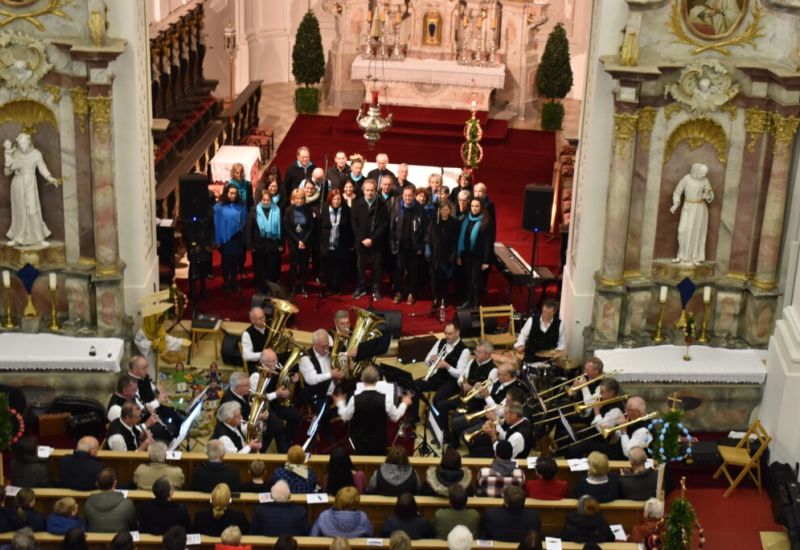 Gospelchor Aitrach und Achtaler Musikanten in der Pfarrkirche in Schloß Zeil