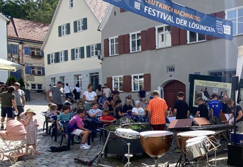 Leutkirch – „Du kannst nicht heute Abend um halb neun die ganze Welt retten.“ Aber vielleicht ein bisschen davon schon. Das sang am Freitagabend, 5. Juli, um ca. 21.00 Uhr die junge Leutkircher Musikerin „Zuselisu“ im „Bock“-Saal. Die Gitarre- und Ukulele-Spielerin und Sängerin gehörte zu denen, die dort „Nachhaltigkeitskunst“ boten. Als Auftakt zum „Festival der Lösungen“. Zu diesem hatte unter anderem die elobau-Stiftung eingeladen.