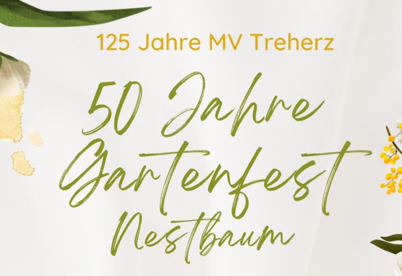 Nestbaum – An zwei Tagen wird Ende Juli in Nestbaum „50 Jahre Gartenfest“ gefeiert: am 27. und am 28. Juli. Einzelheiten hierzu auf dem nachstehend veröffentlichten Plakat. Ausweichtermin: 3. August / 4. August. Am Ausweichtermin findet das Fest auch bei schlechter Witterung statt: in der Reithalle Hauerz. Infos bei zweifelhafter Witterung: Facebook.com/mvtreherz, Instagram.com/mvtreherz, www.mv-treherz.de.