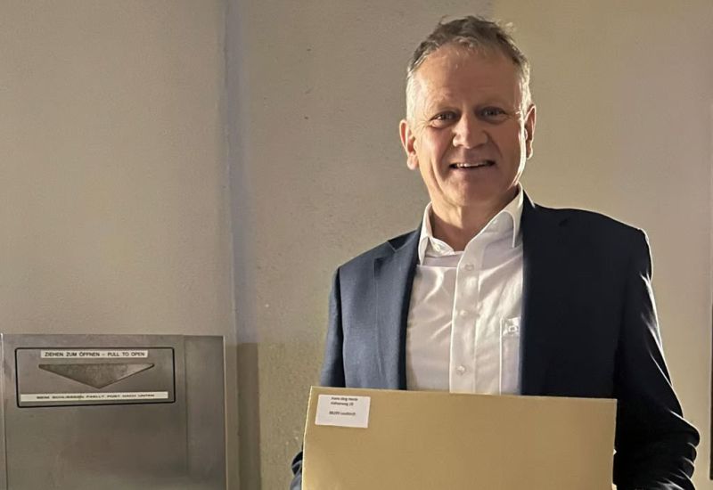 Leutkirch (rei) – Leutkirchs OB bewirbt sich um eine dritte Amtszeit. Um 00.01 Uhr in der Nacht auf Samstag (6. April) warf der seit 16 Jahren amtierende Oberbürgermeister Hans-Jörg Henle am Rathaus in Leutkirch seine Bewerbungsunterlagen ein. Auf Instagram hat er ein Video verbreitet, in dem er eine Bilanz der bisherigen Amtszeit zieht und Ziele für eine dritte Periode nennt.