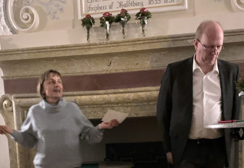 Gebrazhofen – „Gaudete! Sie dürfen sich freuen auf eine Weile der Stille, der Dunkelheit, Besinnlichkeit und des intensiven Erlebens.“ Mit diesen Worten begrüßte Elisabeth Sauterleute die Zuschauerinnen und Zuschauer, die sich am dritten Adventssonntag in der katholischen Kirche „Mariä Himmelfahrt“ in Gebrazhofen eingefunden hatten. „Mit unserer Advents-Performance gestalten wir die Themen der vier Adventssonntage und machen die Transzendenz, die der Adventszeit eigen ist, sinnlich erfahrbar“…