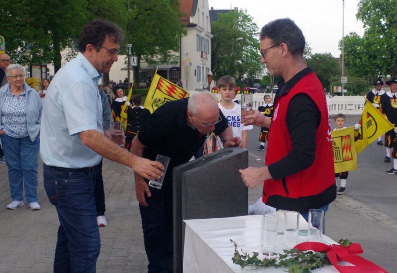 Aulendorf – Am Abend vor dem 1. Mai um 19.00 Uhr hat es noch 23 Grad Außentemperatur. Ein sonniger Tag geht zu Ende und somit sind es ideale Umstände für die Einweihung des neuen Trinkbrunnens am Schlossplatz. Dank der zahlreichen Spenden schon vor Weihnachten und dem Crowdfunding konnte der Förderverein Rot-Weiß-Rad e.V. den Trinkbrunnen für die Stadt Aulendorf und ihre Bürgerinnen und Bürger sowie Besucher verwirklichen. Die Einweihung des Trinkbrunnens fand im Rahmen des Maibaumstellens stat…