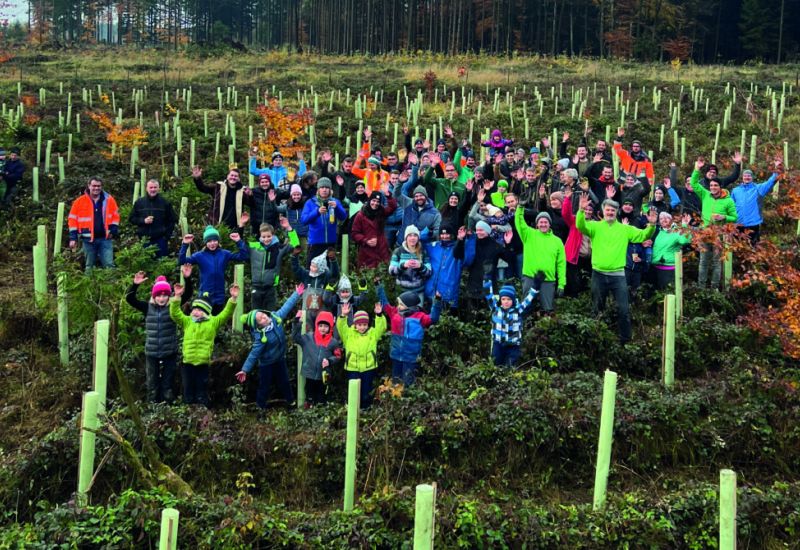 Mitarbeiter von BauGrund Süd setzten 600 Bäume im Wald bei Haidgau