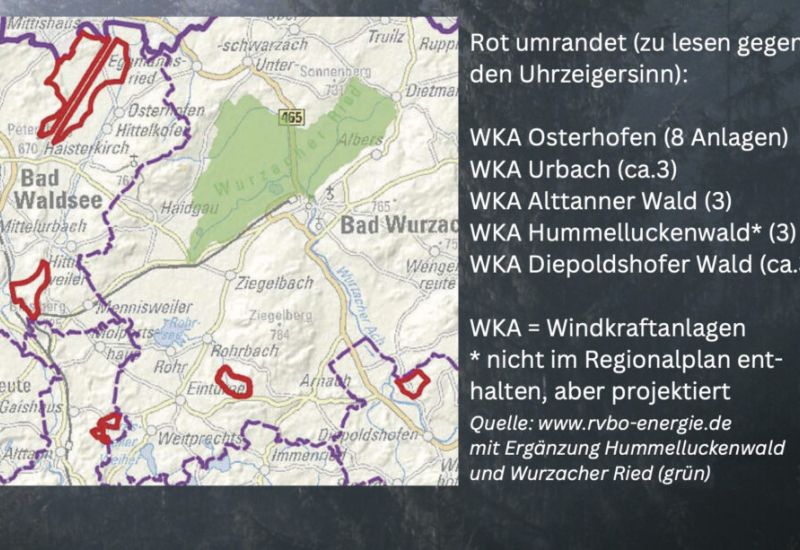 Weingarten – Einstimmig – bei 1 Enthaltung – hat die Verbandsversammlung des Regionalverbandes Bodensee-Oberschwaben (RVBO) in ihrer Sitzung am 8. Dezember in Weingarten den Teilregionalplan Energie (Windkraft und Freiflächen-Photovoltaik) angenommen. Im Umfeld des Wurzacher Riedes sind nach dem Willen der Regionalverbandsversammlung demnach Windkraftanlagen an folgenden Standorten möglich: bei Osterhofen, bei Mennisweiler, bei Weitprechts und bei Bauhofen. Hinzu kommt aller Voraussicht nach de…